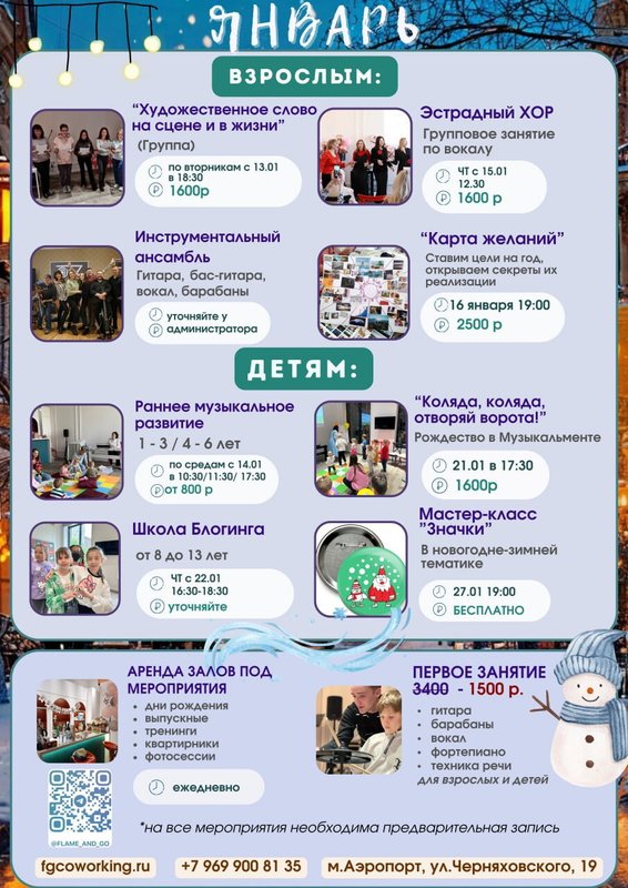 Преимущества: Одно из самых вдохновляющих мест, где я была в последнее время (еще нравится Библиотека иностранной литературы)! Очень много классных мероприятий для всей семьи, периодически проводят День открытых дверей, где можно познакомиться с деятельностью коворкинга. Персонал вежливый, заинтересованный в продвижении своих проектов, ведут хороший телеграм-канал. Хочу попробовать сходить на занятия по вокалу! Желаю коворкингу успехов и процветания 🫶🏻